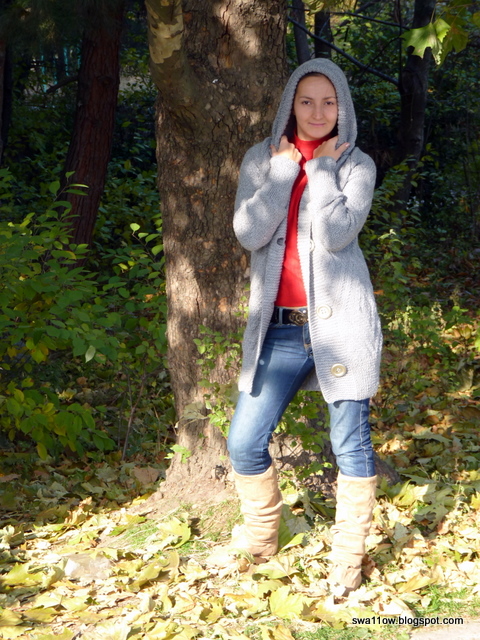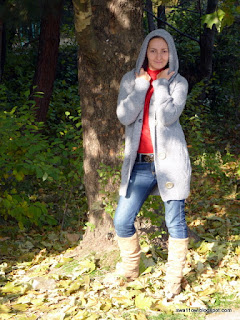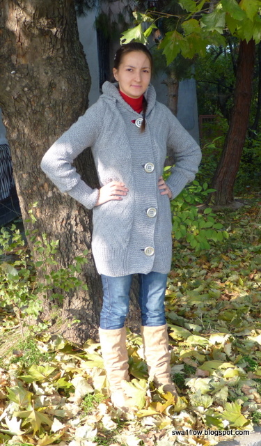 Женское вязаное пальто с капюшоном