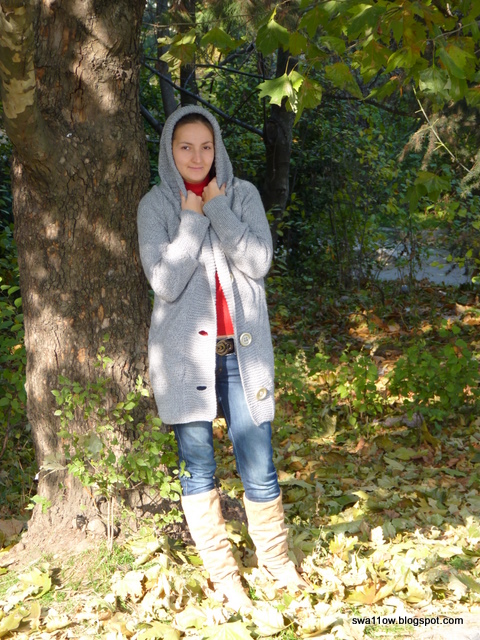 Женское вязаное пальто с капюшоном
